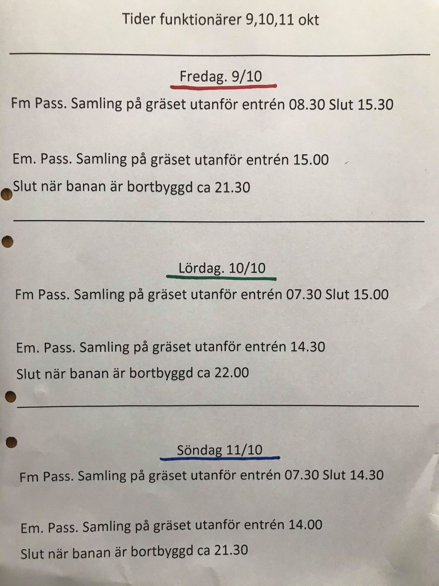 Här kommer information till de funktionärernas som ställer upp och jobbar ideellt under hela helgen.