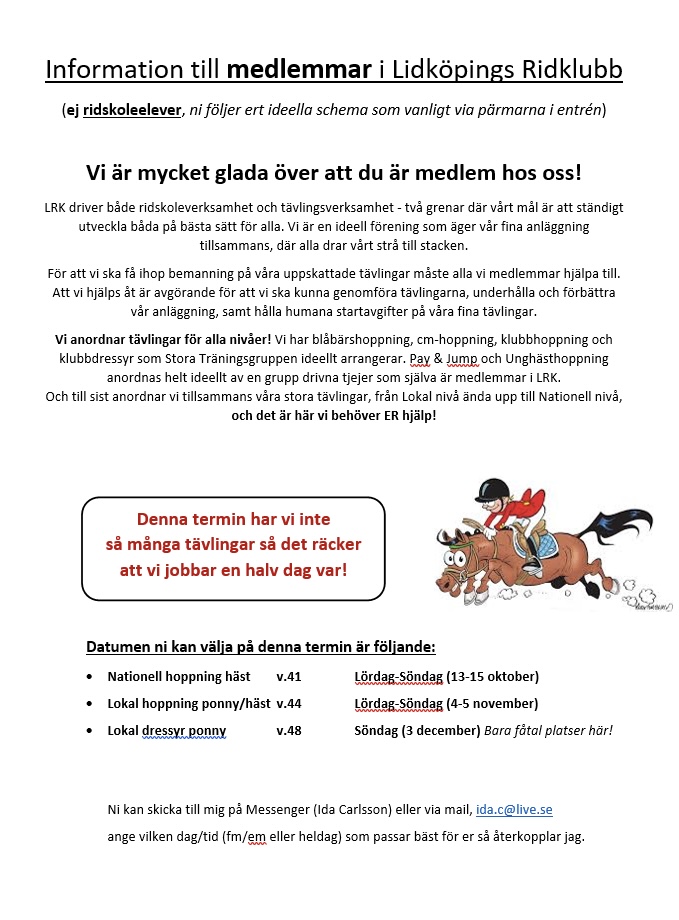 Klubbtävlingar, Pay & Ride, Pay & Jump samt Öppen bana