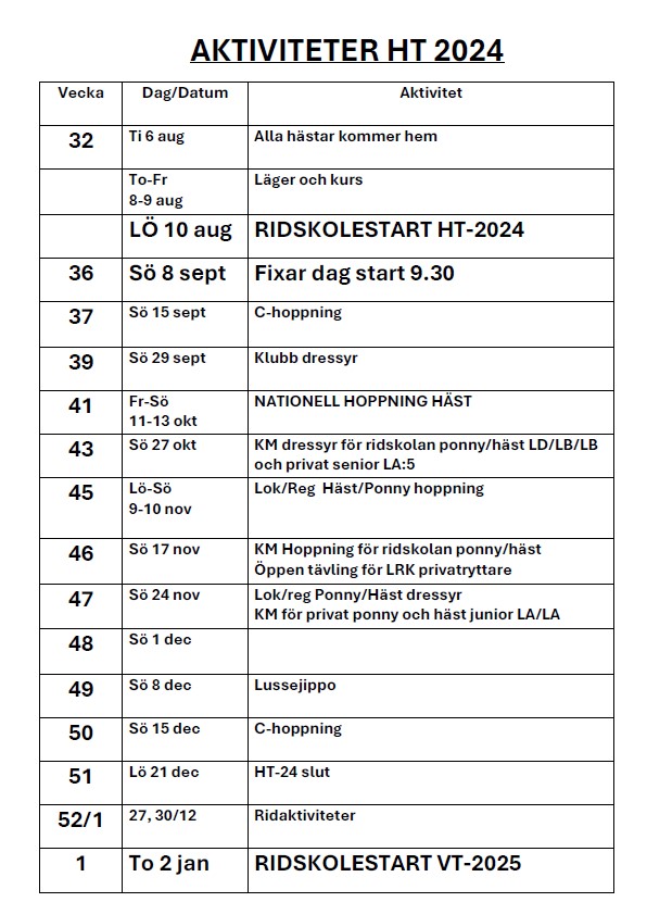 Lediga tider i ridhuset