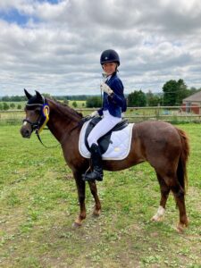 Hilma Björhed Plahn, 9 år och ridande för Lidköpings ridklubb, har under helgen 1-2/7-23 varit på meeting i Åmål och lyckats rida felfritt 4 av 4 starter med sin B-ponny Tommy be Good. Detta var ekipagets fjärde omhoppning tillsammans och de toppade det med en andraplats i lätt E.