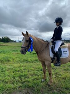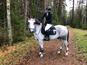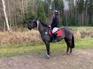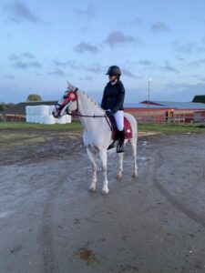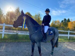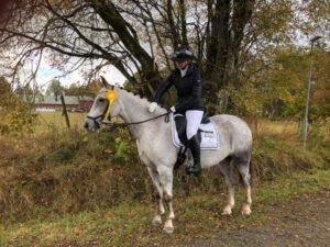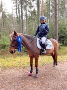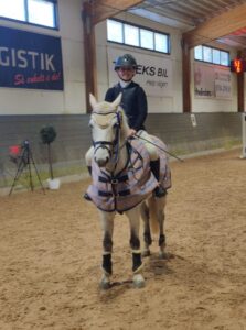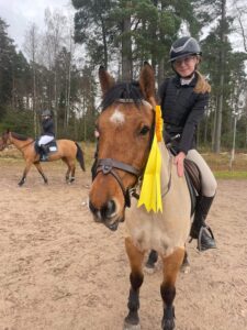 Lördagen 28/10-23 Skaraortens ryttarförening anordnade dressyrtävlingar och för ponnyryttaren Kajsa Åkerberg slutade dagen med en seger.