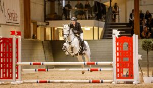 10 - 12 februari 2023 Var Kajsa Åkerberg med hopponnyn Beano testade på den långa dressyrbana för första gången under Grevagården 3* tävlingar. Kajsa blir taggad av omöjliga utmaningar, som att skola om en 16 årig hopponny till att våga ställa upp i en 3* LA:4.