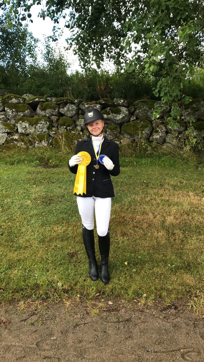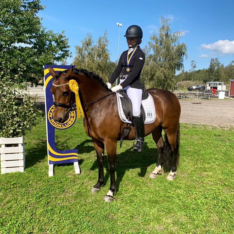Ellen Baudtler med sin ponny Melissa Monique placerade sig som trea i LD+, kategori C i Tidaholm. Ekipaget har känt varandra i tre månader och det här var tredje starten på lokal nivå. I LC+ kom ekipaget i mål med fyra fel i grundomgången men är väldigt nöjda efter dagens resultat.