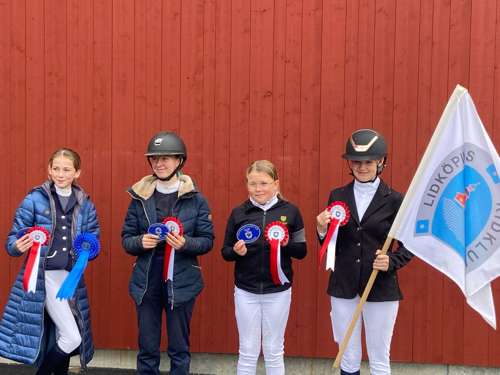 Lidköpings Ridklubbs lag bestod av Malin Åkerberg, Vera Eriksson, Ellen Fyhr, Vera Ottersten och Clara Hildingsson. Tjejerna i laget, som denna gång bestod av såväl pararyttare och ridskoleryttare samt ryttare med egen ponny, levererade fina individuella prestationer och sammanlagt räckte det till en andraplats för laget. Laget ligger nu på en sammanlagd fjärdeplats inför sista omgången som avgörs i Essunga nästa helg.