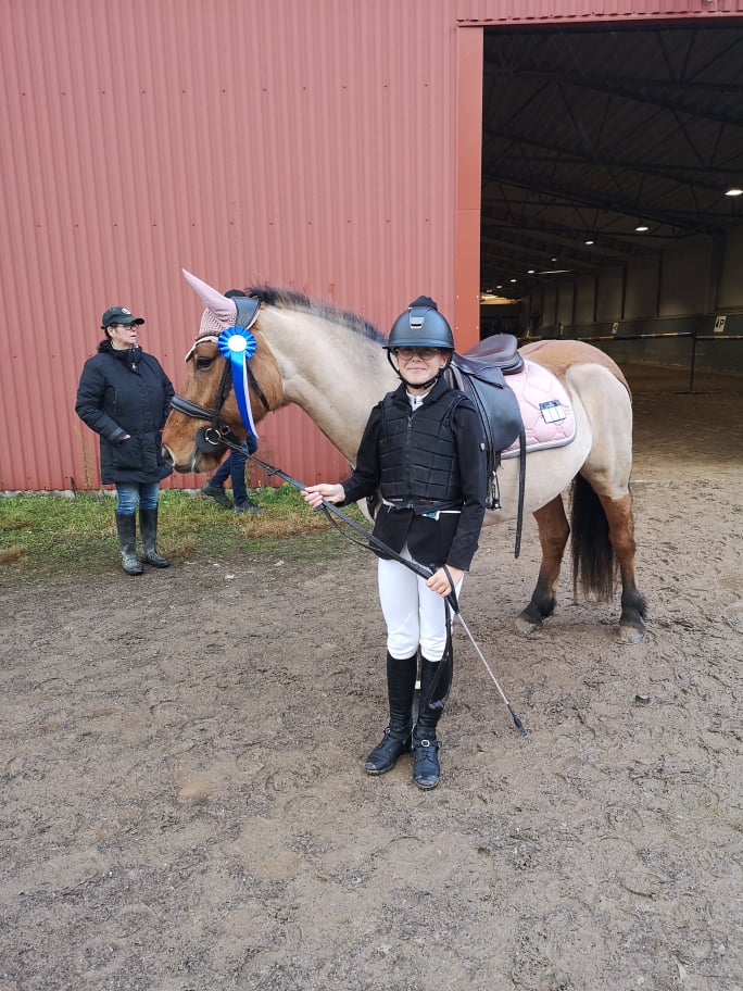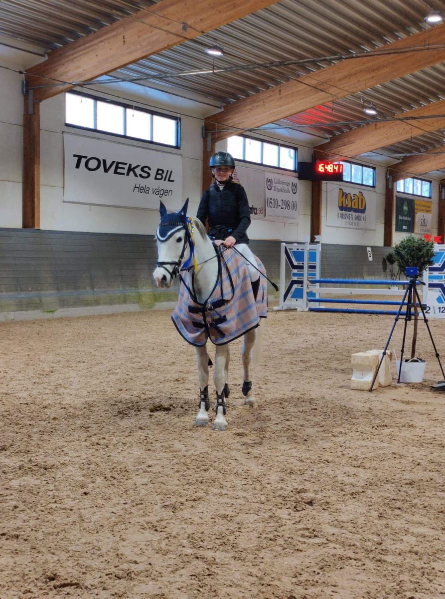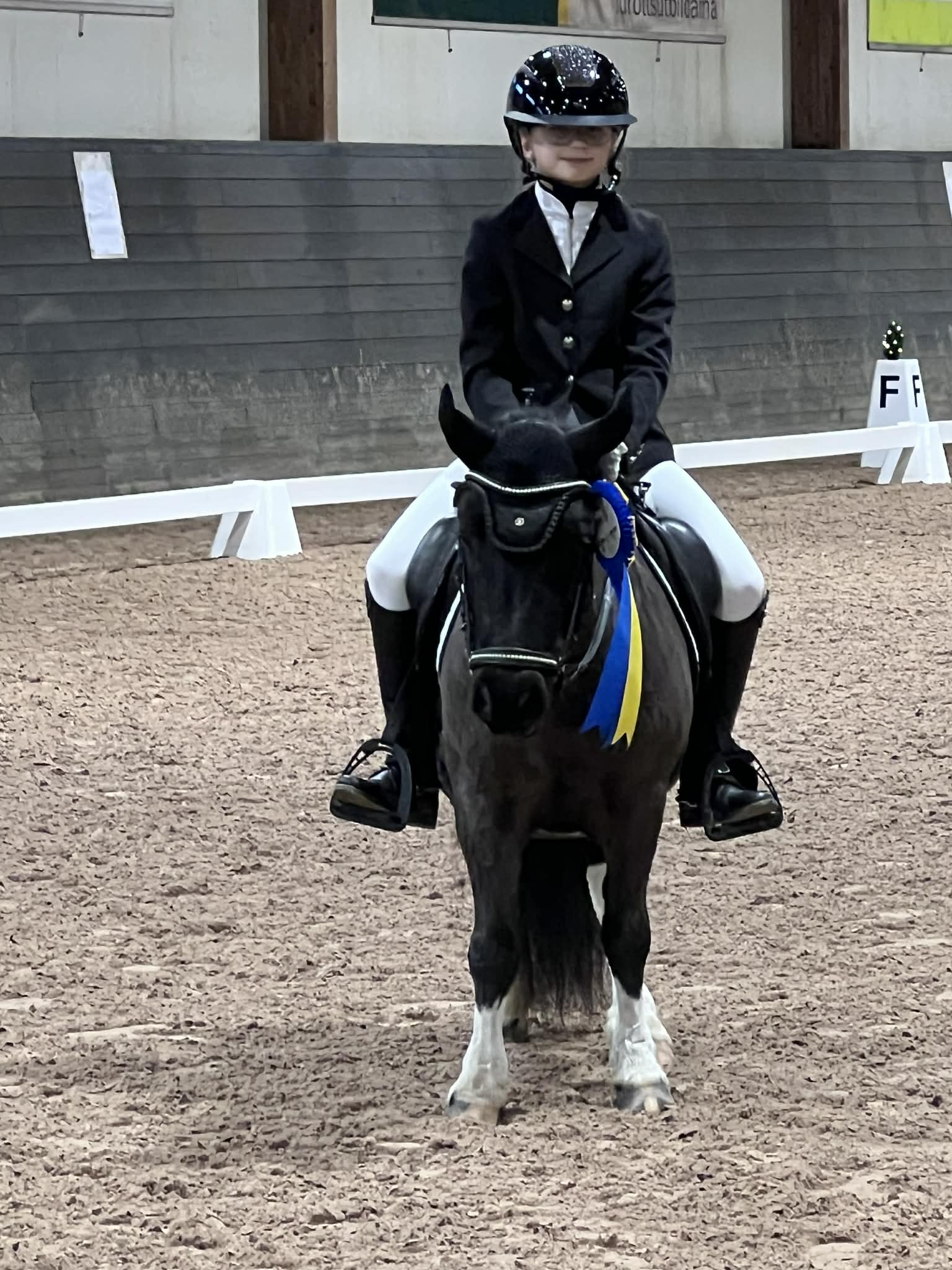 Lördagen 28/10-23 Skaraortens ryttarförening anordnade dressyrtävlingar och för ponnyryttaren Kajsa Åkerberg slutade dagen med en seger.