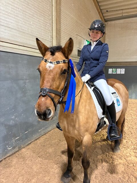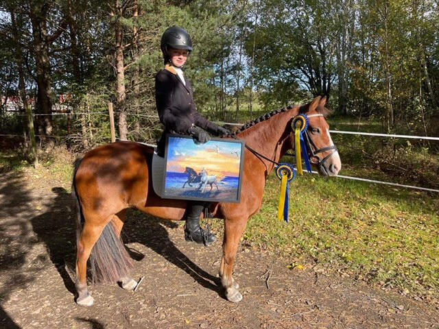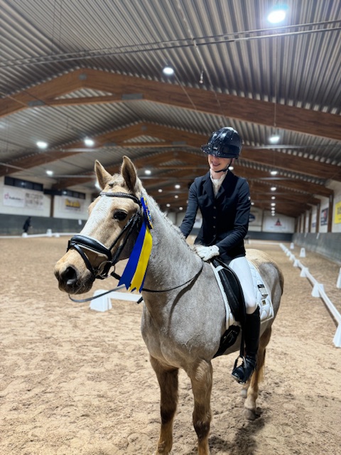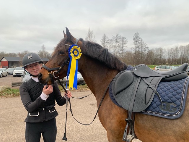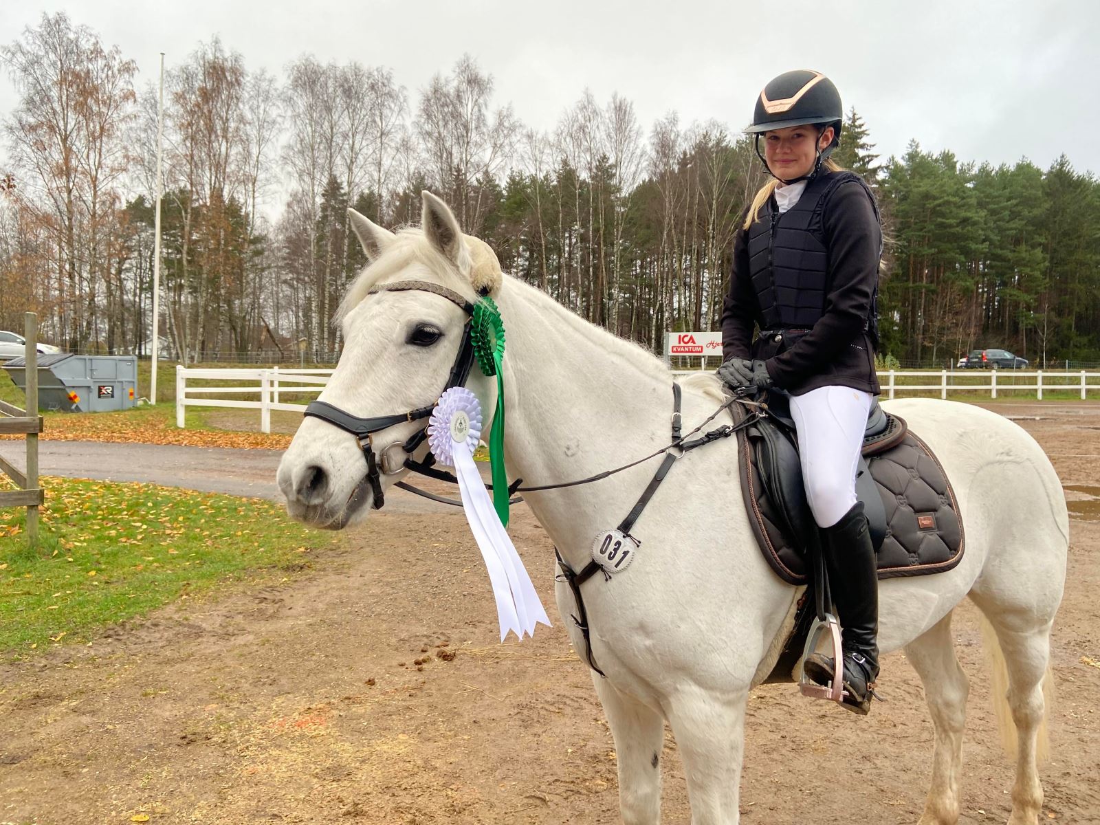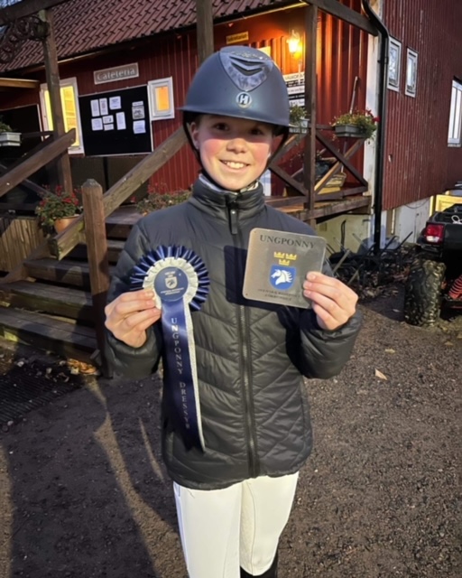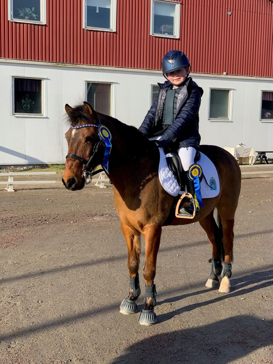 Lördagen 28/10-23 Skaraortens ryttarförening anordnade dressyrtävlingar och för ponnyryttaren Kajsa Åkerberg slutade dagen med en seger.