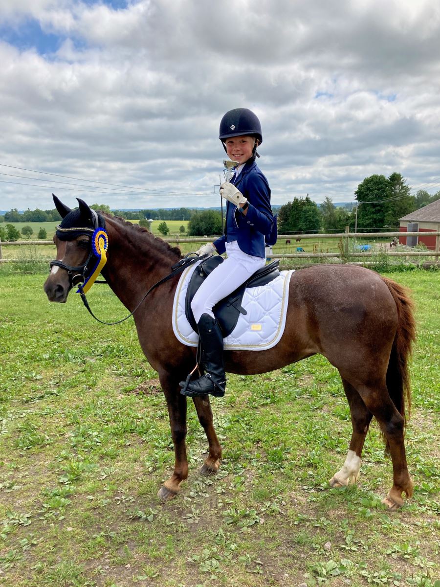 Söndagen 15/6 -25 var Novalie Olausson och b-ponnyn Willbrook Saphire på tävling i Tämta. De red en Ld där de kammade hem en andra placering, och i avd b (ld) var de felfria.