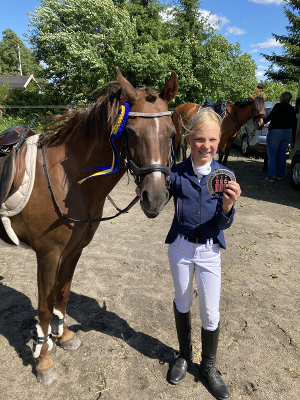 Hilma Björhed Plahn, 9 år och ridande för Lidköpings ridklubb, har under helgen 1-2/7-23 varit på meeting i Åmål och lyckats rida felfritt 4 av 4 starter med sin B-ponny Tommy be Good. Detta var ekipagets fjärde omhoppning tillsammans och de toppade det med en andraplats i lätt E.