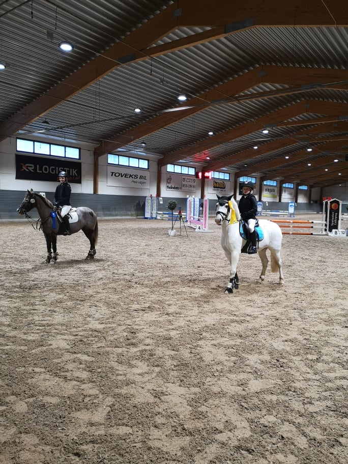 Under helgen 11-12/12-2023 har Siri Eriksson och Kajsa Åkerberg dressyrtävlat med sina ponnys Bay Warrior -och Beano.
