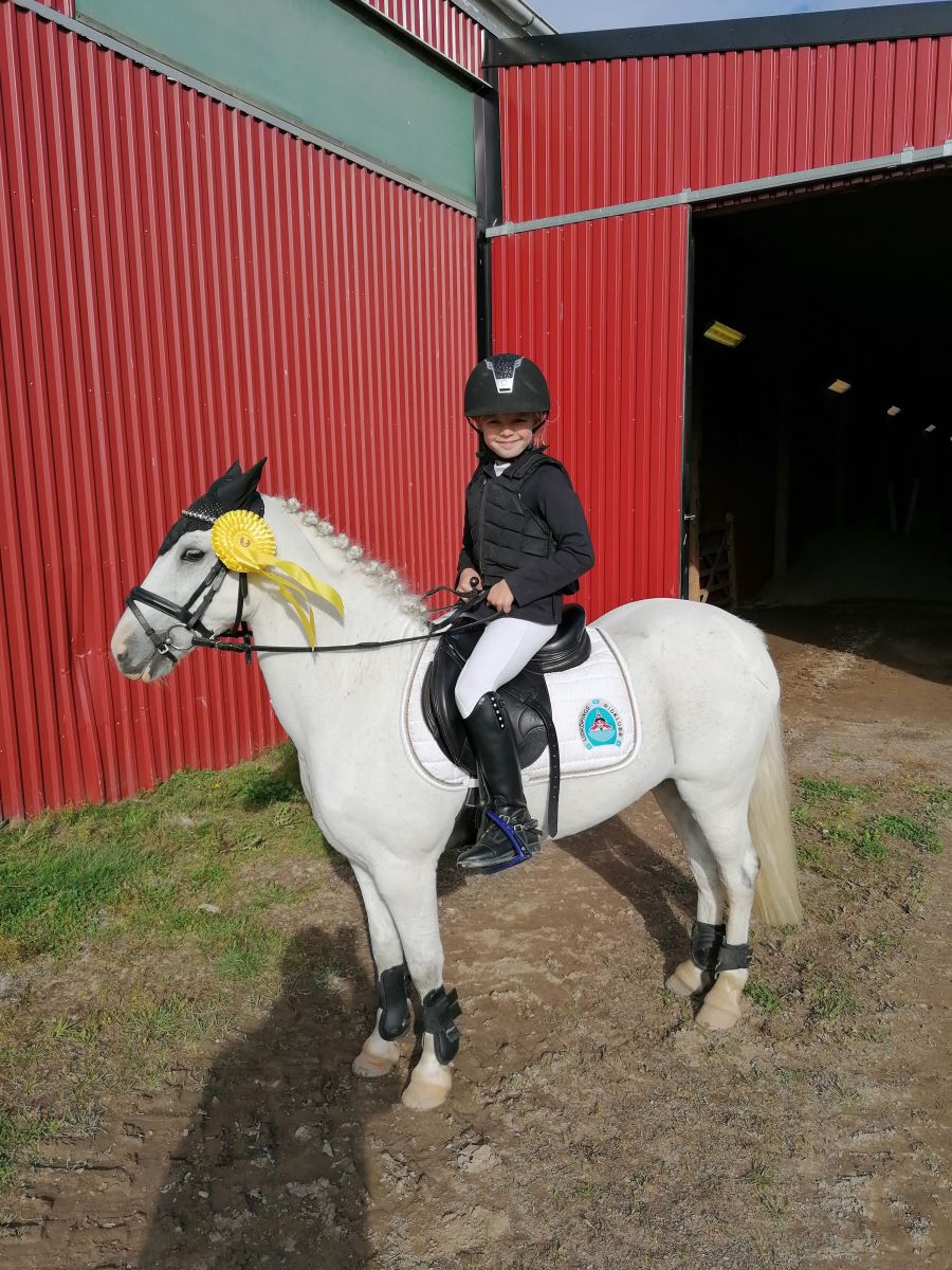 Kajsa och B-ponnyn Beano knep en vinst även de på söndagens tävling hos Grevagårdens Ryttarförening. Vinsten fick de i klassen Lätt B.