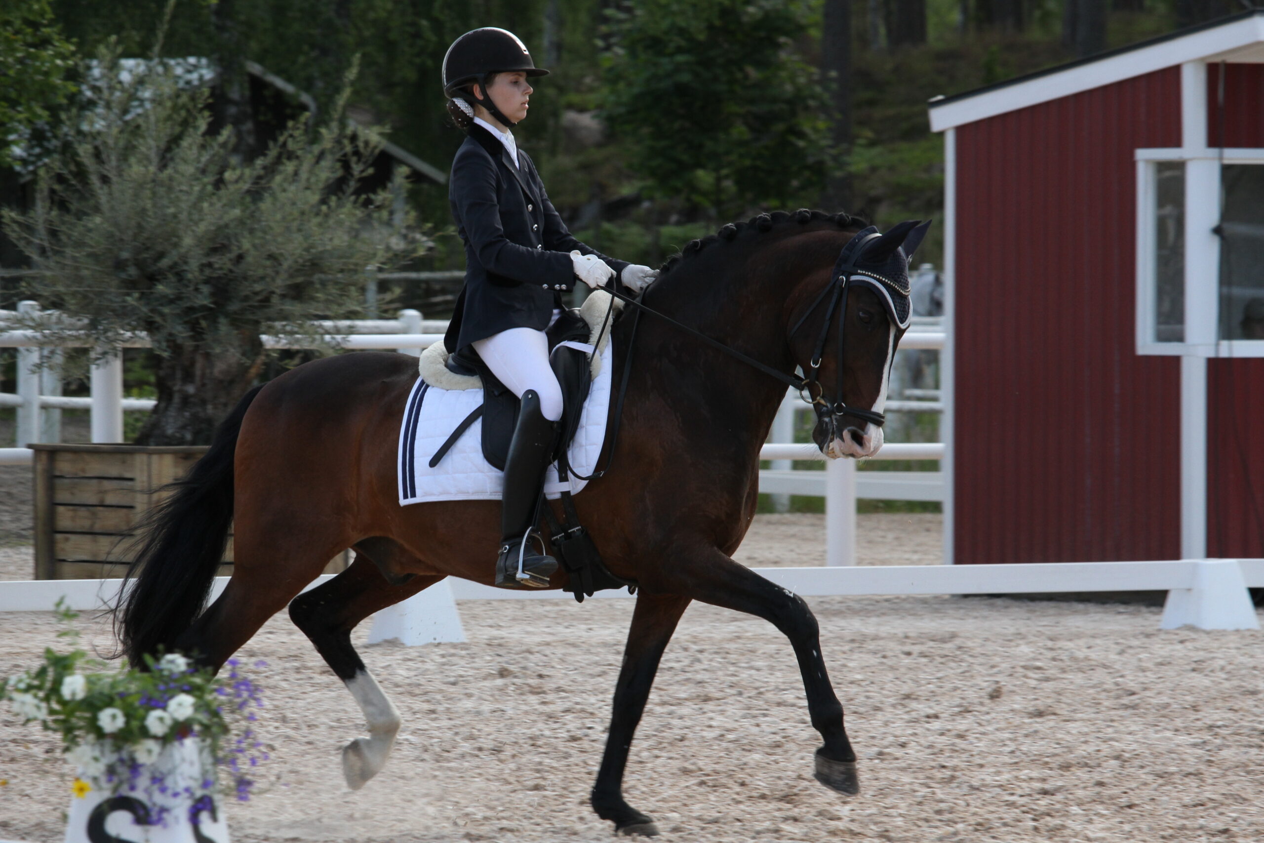 Ellen Fyhr och ponnyn Meiriogen Aur som representerar Lidköpings Ridklubb slog till med rekord för ekipaget i klassen Lätt B , nämligen hela 69,107%. Det räckte till en bronspeng och därmed en fin tredjeplats. I samma klass kom Vera Ottersten på Craig Mor Toby på nionde plats och Vera Eriksson på Blue Ben på elfte plats.